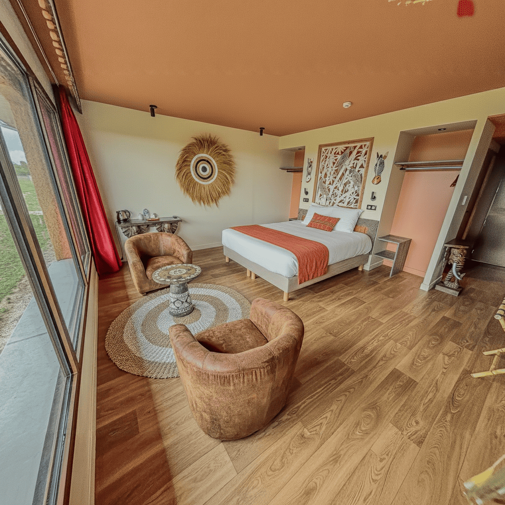 Ce type d’hébergement est fortement déconseillé aux personnes à mobilité réduite puisque la douche est surélevée. En raison de la présence d’animaux sauvages sur le domaine, les animaux domestiques ne sont pas autorisés. Pour le respect de la biodiversité et pour la santé de nos animaux vivants sur le domaine nous vous informons qu’il n’est pas autorisé de leur donner de la nourriture extérieure au Cerza Safari Lodge. Les produits de toilette (savon, gel douche, shampoing…) ne sont pas fournis. Les draps et serviettes sont fournis. Les lits ne sont pas faits à votre arrivée (sauf option “Lits faits” à 14,90€ par lit).