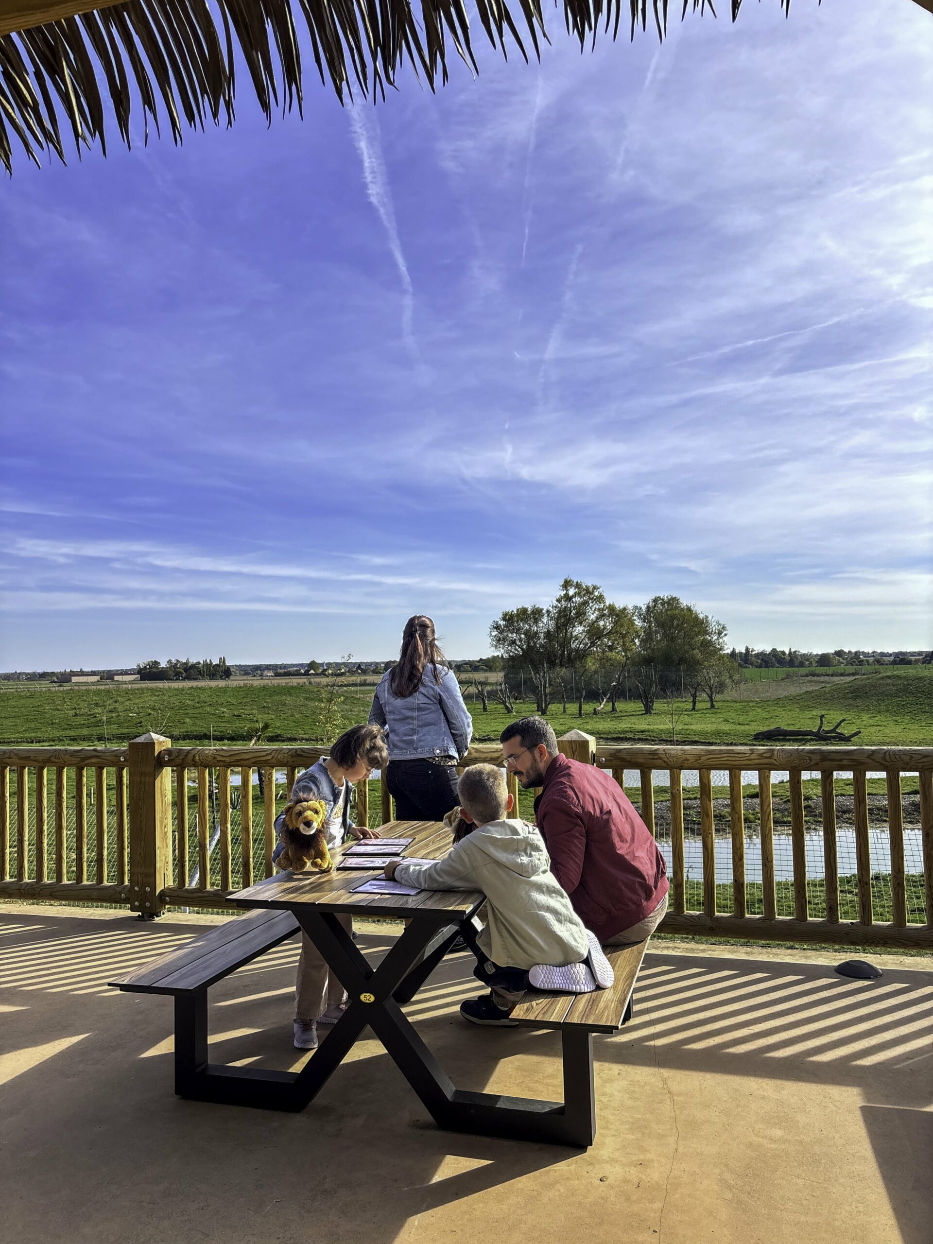 Découvrez « Le bivouac » snack du circuit rouge. Une pause relaxante et dépaysante avec une vue surplombant la plaine des zèbres, gnous et autres antilopes…